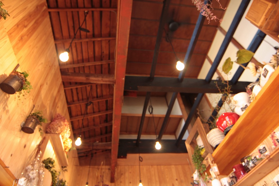 古民家を改造した花屋さんのリノベーション 軸組を活かし吹き抜けを設けた空間デザイン施工例|株式会社センシン