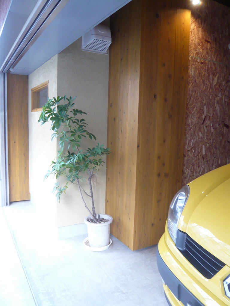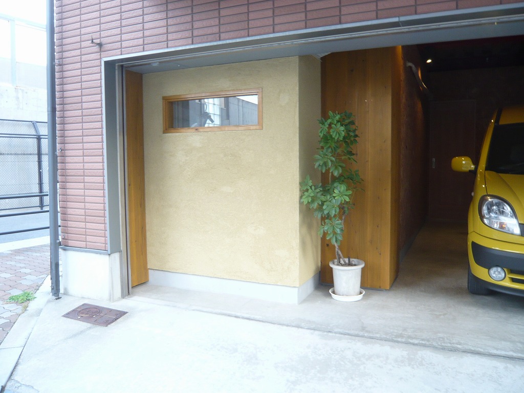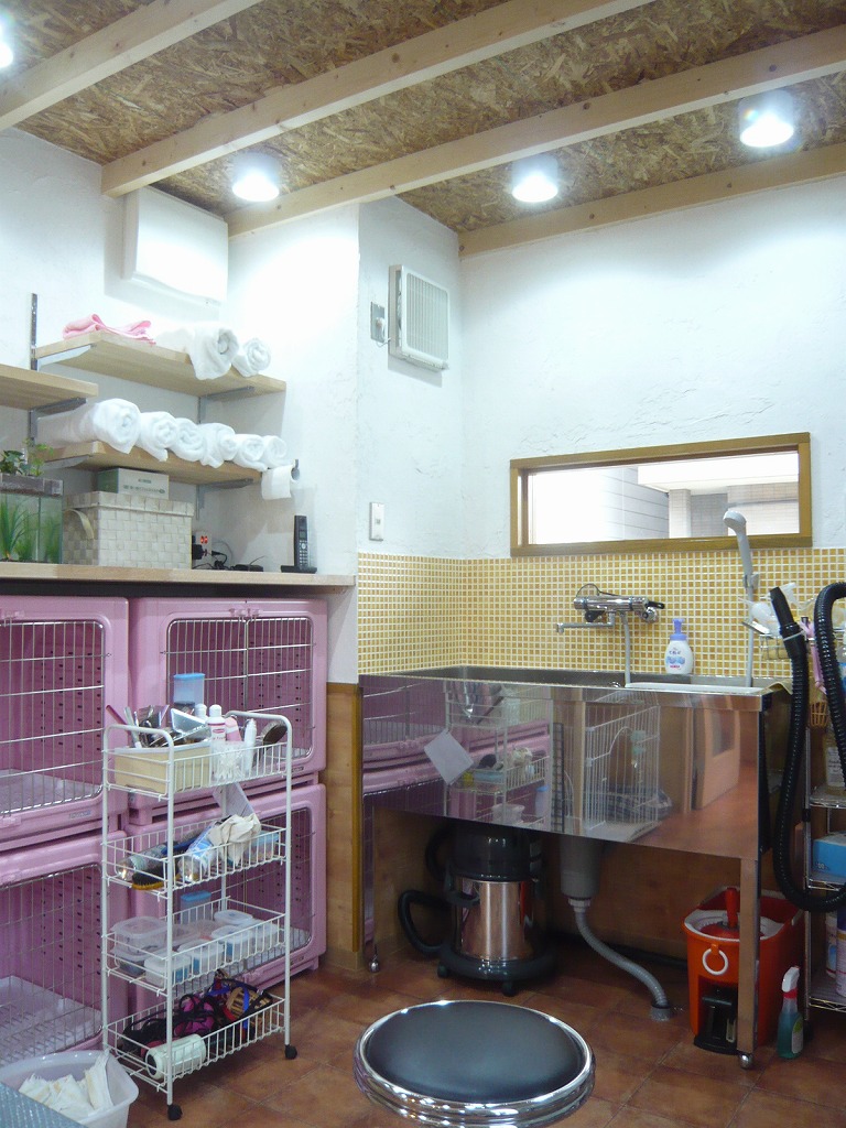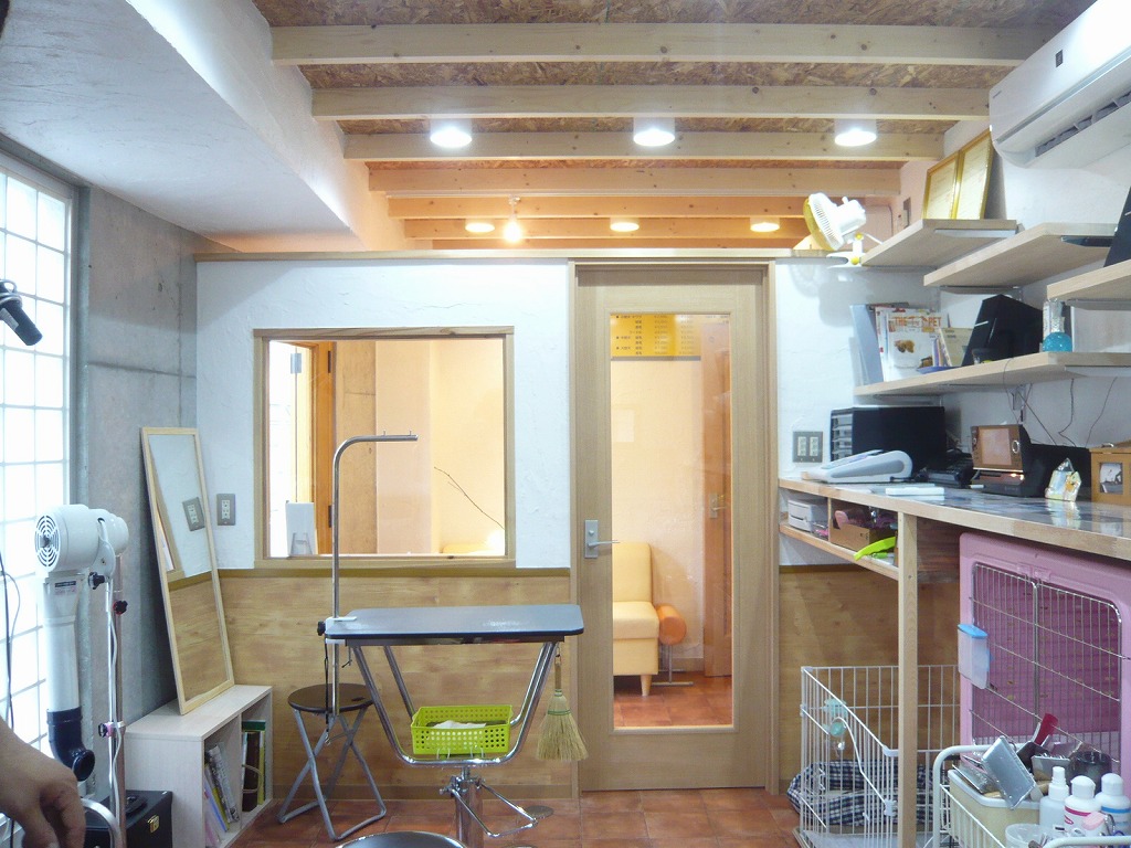 住宅1階ガレージをドッグサロンへコンバージョン 木板・土壁・漆喰・OSB・黒鉄を用いた施工例